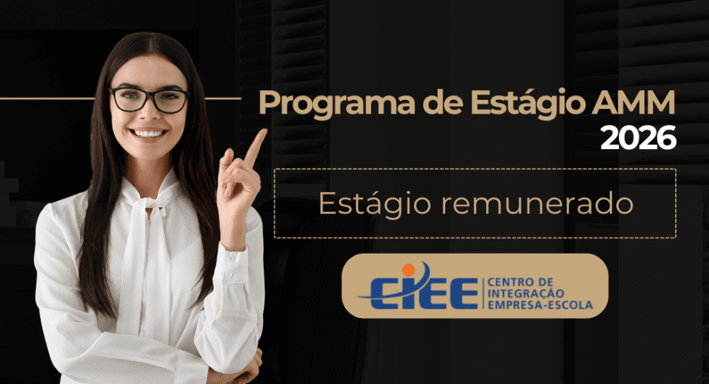 Estão abertas as inscrições para o Programa de Estágio em Direito 2026 da AMM Advocacia, desenvolvido em parceria com o Centro de Integração Empresa-Escola (CIEE). O programa é voltado para estudantes que buscam estágio jurídico com formação prática em escritório de advocacia, com atuação nas áreas de Direito Civil e Direito Previdenciário.